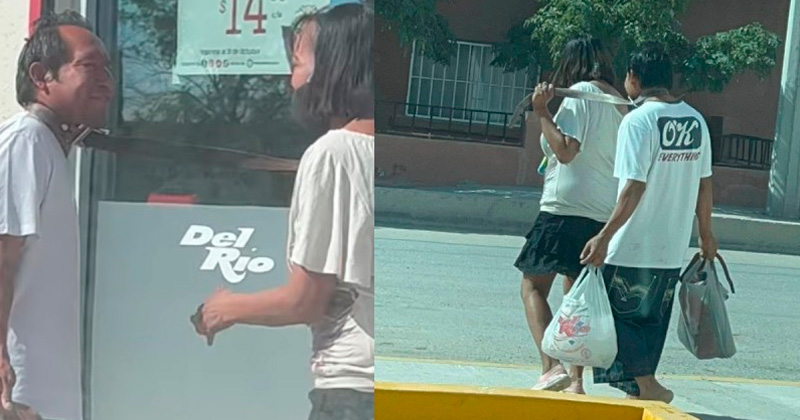 Captan a mujer que amarró a su novio del cuello y «lo sacó a pasear»