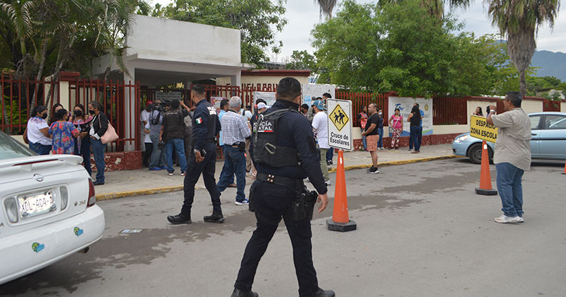 Atienden denuncia más de diez patrullas de la Policía Estatal y de la fiscalía; padres de familia retiran a sus hijos; directora niega los hechos