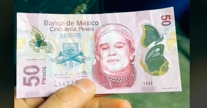 El billete falso de 50 pesos que está circulando, tiene un característico color rosa, marca de agua, hilo micro impreso, ventana transparente con una fusión entre el rostro del cantante Juan Gabriel y de José María Morelos y Pavón