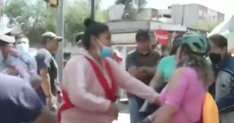 Video. Mujer se agarra a golpes con manifestantes porque no la dejaban pasar