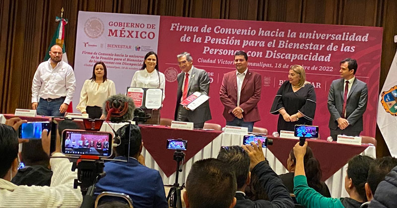 La titular de Bienestar, Ariadna Montiel Reyes, señaló que con la firma del convenio se suman esfuerzos en favor de las personas con discapacidad en Tamaulipas.