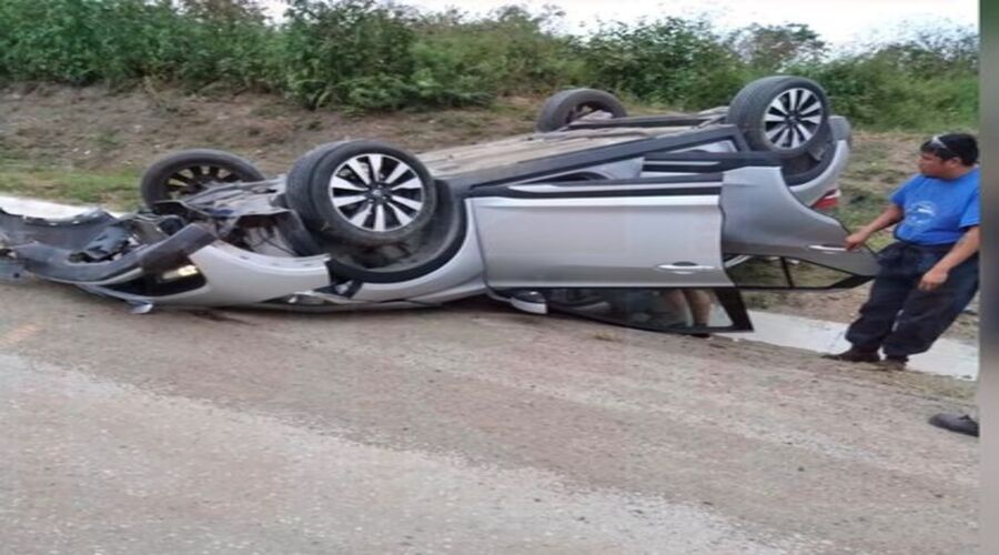 La volcadura de una camioneta dejó como saldo dos personas lesionadas y daños materiales de consideración.