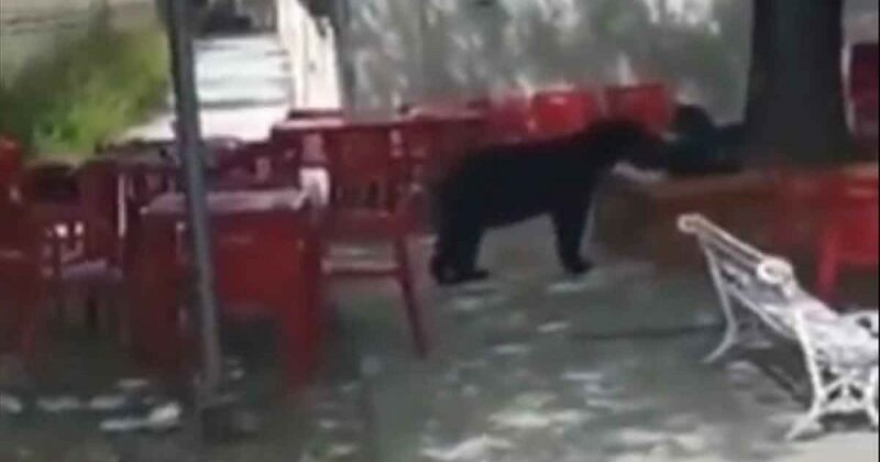 En las imágenes registradas por estudiantes, se observa al animal caminando en una especie de explanada mientras olfatea algunas mochilas que encuentra por ahí.