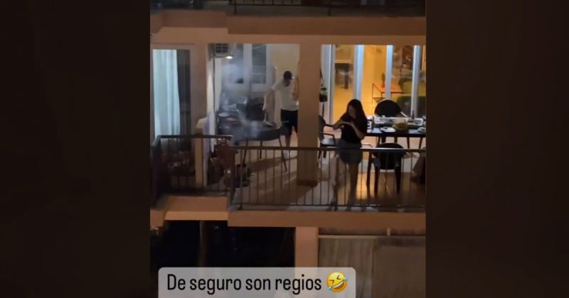 Una grabación muestra el momento en el que una familia disfruta de una “carnita asada” en la terraza de un departamento y es sorprendida por bomberos que fueron alertados de un incendio