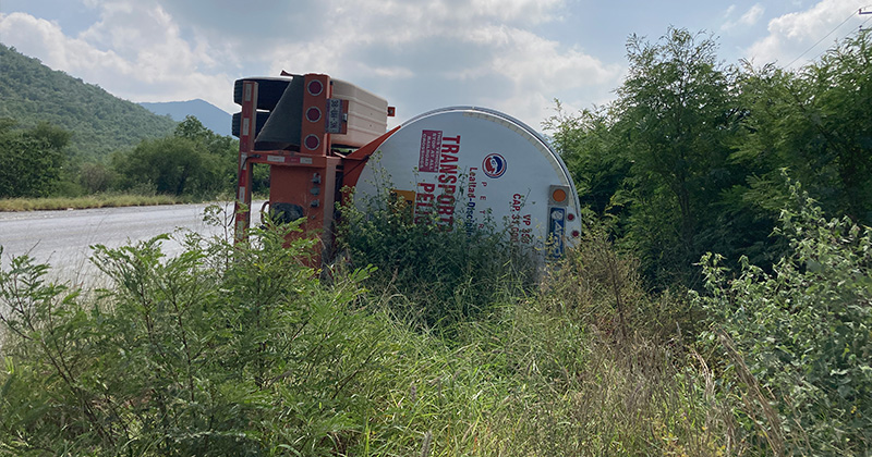 El accidente se registró al desprenderse de un Dolly, y acaba volcado en un tramo de la carretera Rumbo Nuevo