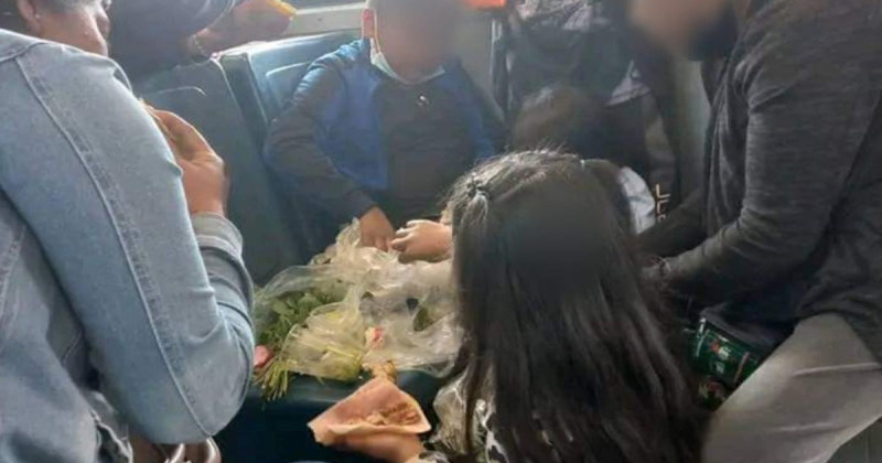 Una familia de la CDMX fue captada comiendo el famoso taco placero en uno de los vagones del Metro