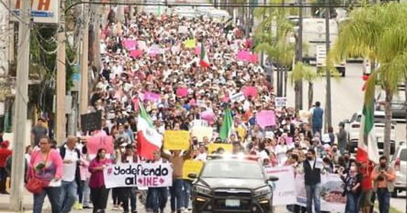 Sobre la avenida Hidalgo, desde la calle Palma y hasta llegar a la plaza de Armas, miles de ciudadanos se fueron sumando lanzando vivas a Tamaulipas, México, al INE y a la Democracia