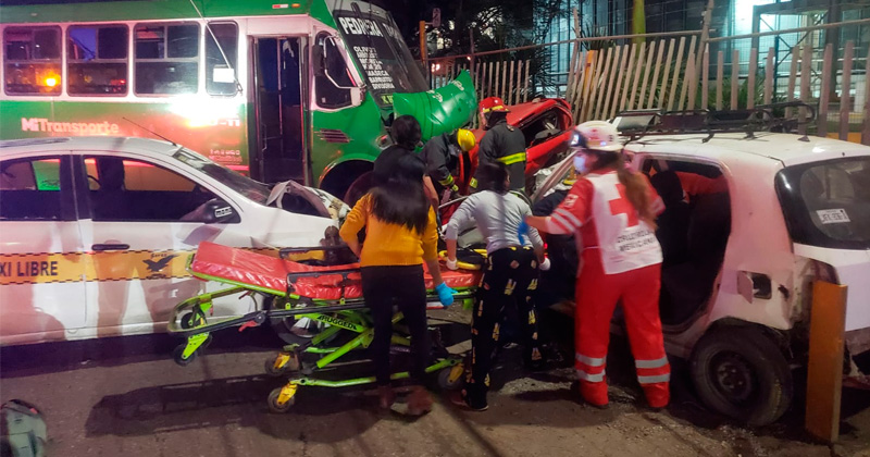 Un lamentable accidente fue el registrado la noche de este domingo en la avenida de la Industria cuando un autobús Pedrera Tampico invadió el carril contrario comisionando contra 3 automóviles compactos
