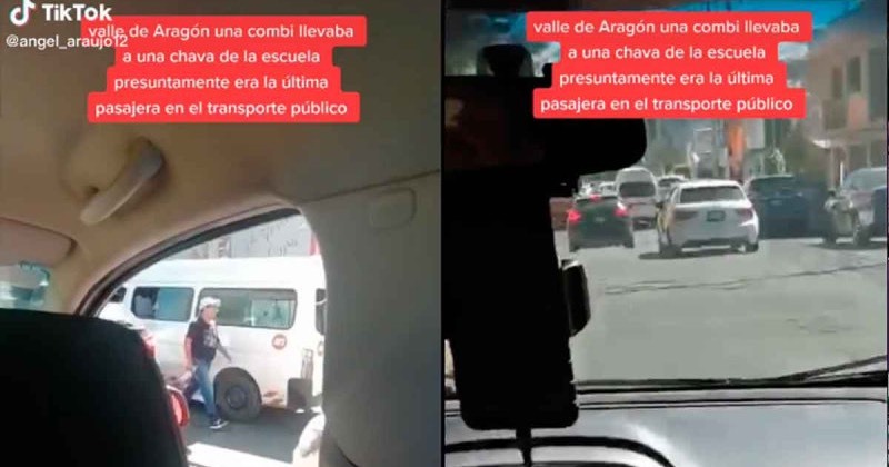 El video, que lleva la leyenda “Valle de Aragón, una combi llevaba a una chava de la escuela, presuntamente, era la última pasajera en el transporte público”, se escucha cómo, un hombre pregunta a la gente ¿se la quería llevar, no?