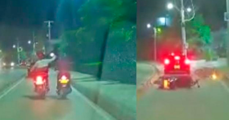 Los hechos quedaron documentados en un video, que ha estado circulando en redes sociales, donde se observa cómo un hombre en motocicleta roba el celular de una mujer que también viaja en moto; segundos después del asalto, la víctima decide tomar la justicia por sus manos y con su vehículo embiste al ladrón. Cientos de internautas han reaccionado al clip y felicitaron a la mujer por reaccionar ante la agresión.