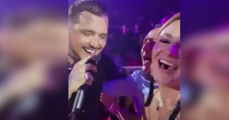 Captan a Christian Nodal distraído con escote de una fan en pleno concierto
