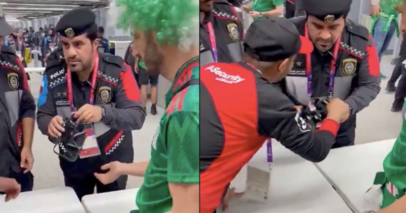 Mexicano intenta meter bebida dentro de binoculares a estadio de Qatar y lo cachan