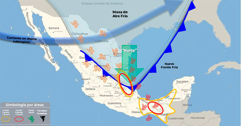 El SMN pronostica que traerá un marcado descenso en el clima del estado, al igual que lluvias de fuertes a puntuales intensas