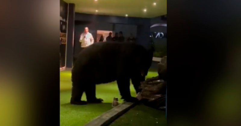 Mediante redes sociales, un usuario captó el momento donde se puede ver como el oso se encontraba husmeando entre las bolsas de basuras del club residencial