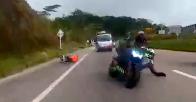 Video. Captan momento en que un motociclista arrolló a un ciclista por rebasar en carretera