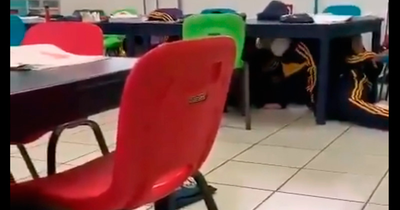A través de redes sociales, se compartió el momento en el que la maestra entona una canción mientras los estudiantes siguieron las indicaciones de seguridad.