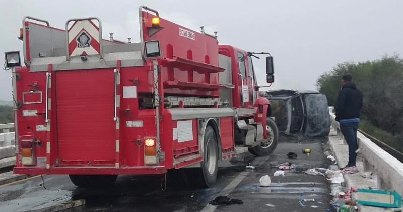Volcadura e incendio de vehículo deja 4 lesionados en carretera a Matamoros