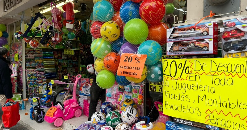 El negocio llamado «Casa Ceja», ubicada en la calle Emilio Carranza colocó unos carteles en donde se puede leer «20 por ciento de descuento en toda la juguetería, triciclos, montables, bicicletas».