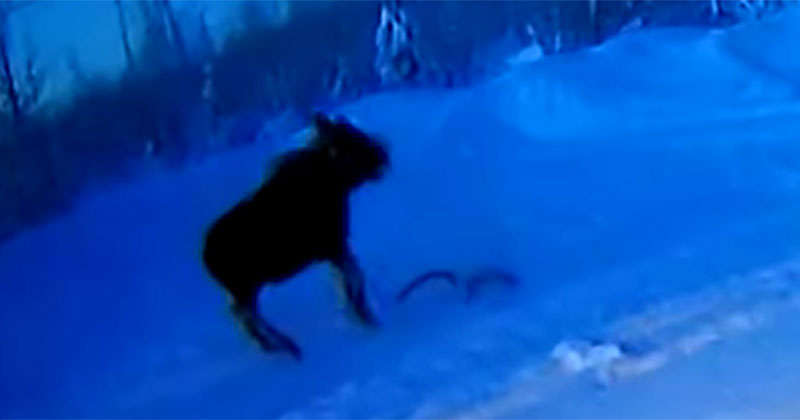 Captan momento en que a un alce se le caen sus cuernos y se asusta