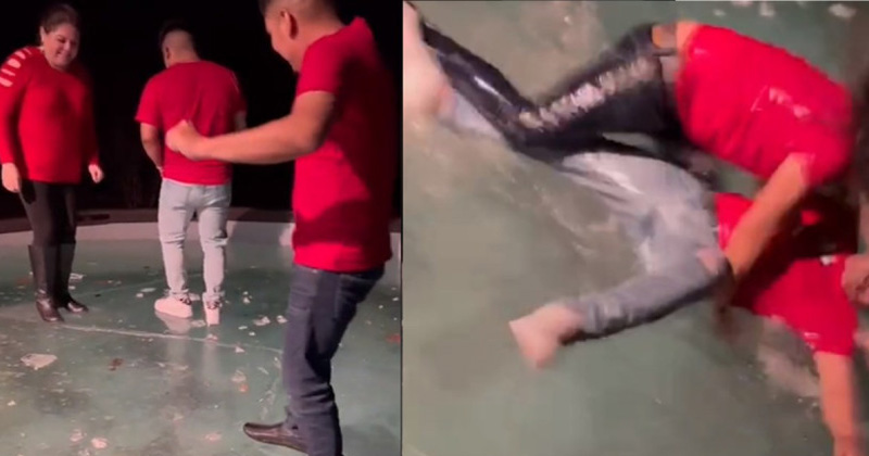 Bailaban en alberca congelada pero se rompe el hielo y caen