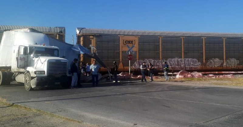 Tren choca contra tráiler en Nuevo León; hay heridos