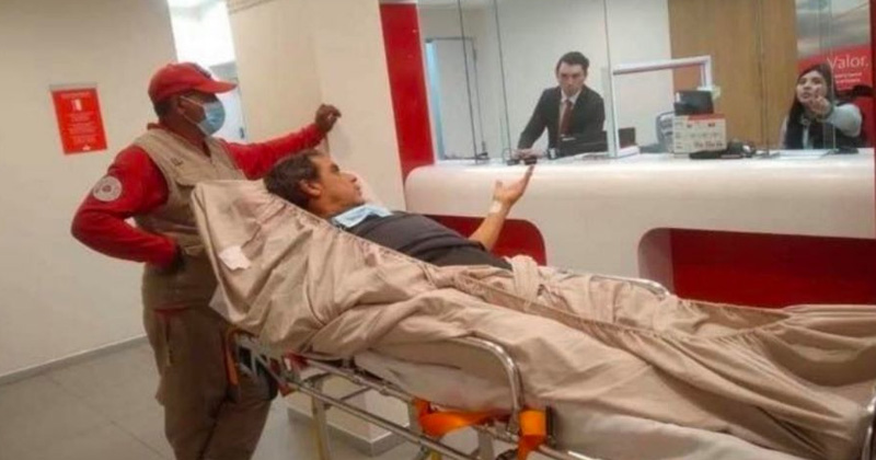 Hombre en camilla es obligado por el banco a presentarse por un trámite
