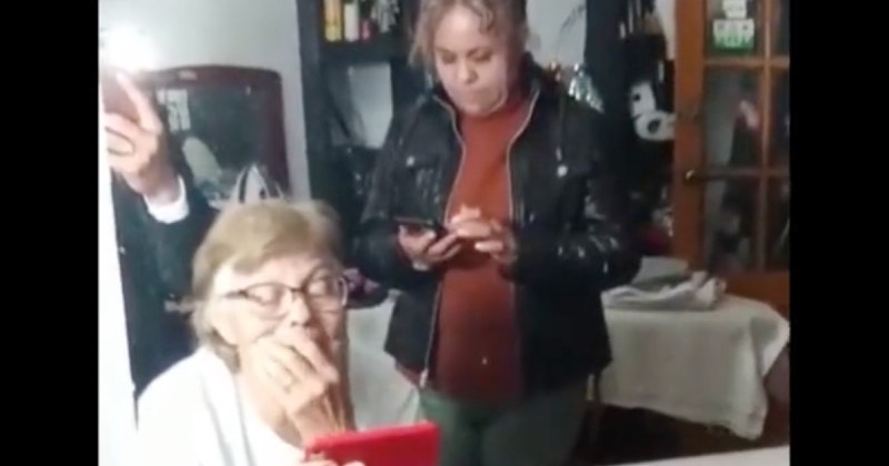 Se ha hecho viral un material en video que muestra el momento en que una abuelita observa detenidamente el video de Babo
