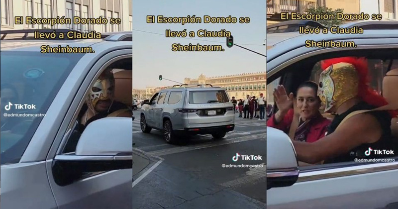 VIDEO: Captan a Claudia Sheinbaum en camioneta con el Escorpión Dorado