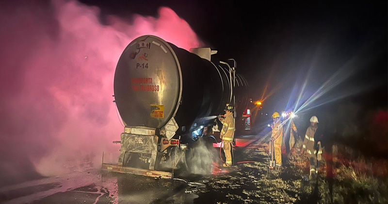 San Fernando, Tamaulipas.- Controlan autoridades incendio registrado en el Libramiento San Fernando – Matamoros de una pipa que transportaba aceite.