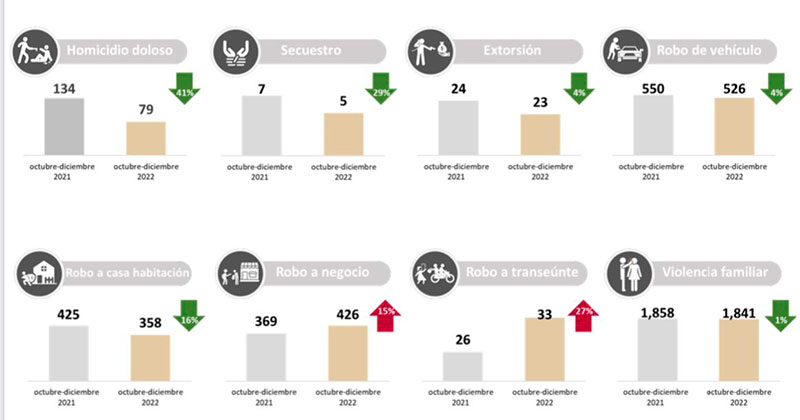 El homicidio doloso, secuestro y robos de automóviles y a casa habitación registraron en Tamaulipas una reducción considerable en comparación con el mismo periodo del año anterior