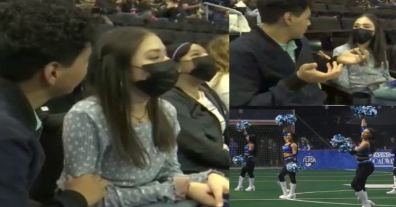 Las cámaras de la Arena Monterrey y la transmisión del encuentro grabaron el momento en que una joven pareja comenzó a discutir durante la rutina de las porristas
