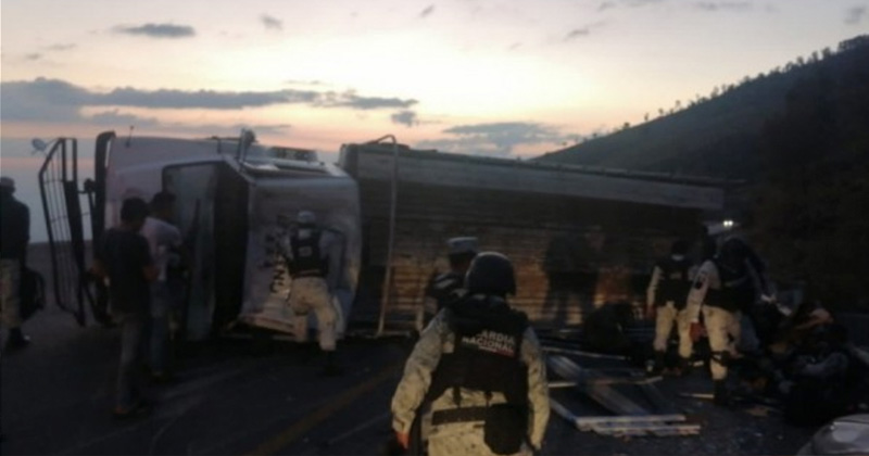 Un vehículo que transportaba a los agentes de la Guardia Nacional volcó en la carretera San Cristóbal de Las Casas-Tuxtla Gutiérrez