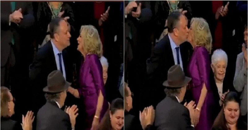 Captan a esposa de Joe Biden besando al marido de Kamala Harris