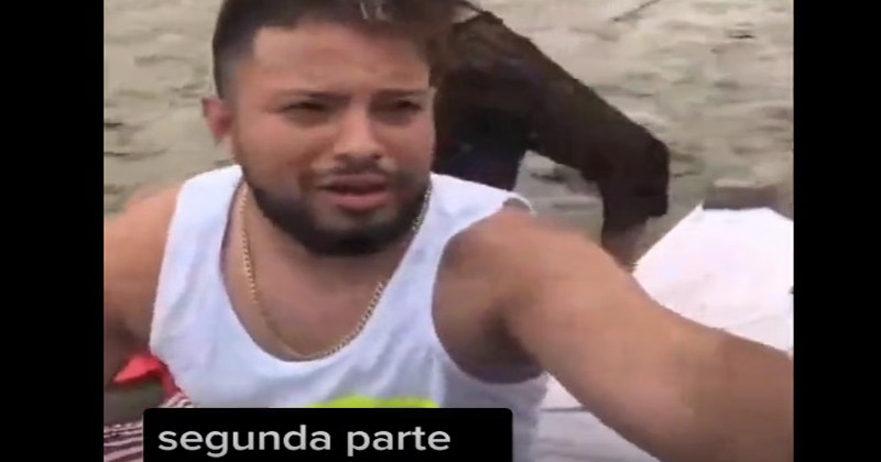 Mientras el hombre le pedía a su esposa que dejara de grabar, la joven con la que estaba recostado en la arena intentó escapar