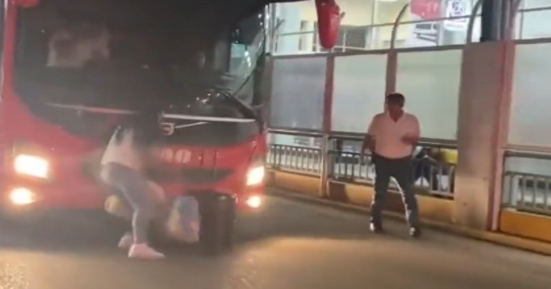 Mujer llegó tarde e intentó parar el autobús con su cuerpo para que la dejaran subir