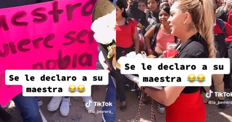 En pleno Día de San Valentín un joven le declaró su amor a la maestra, pero ella rápidamente rechazó su propuesta de ser novios.
