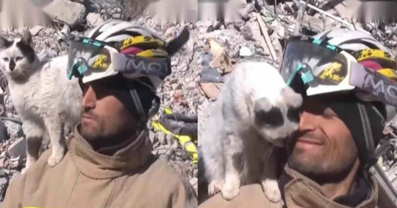 Rescatista adopta al gatito que salvó de entre los escombros en Turquía