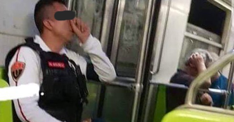 En redes sociales circula la imagen de un aparente guardia de seguridad que va presuntamente ‘moneando’ en el Metro de la CDMX