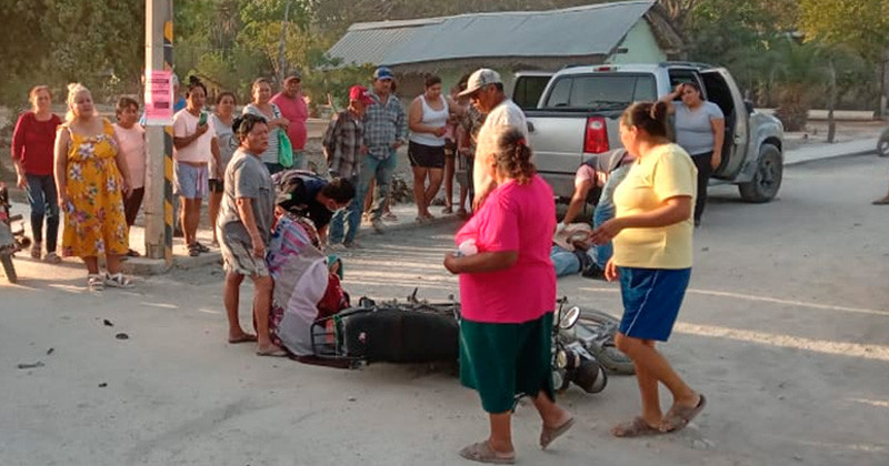 MANTE, TAMAULIPAS.- Un hombre y una mujer resultaron heridos luego de que la motocicleta en que viajaban fue impactada por una camioneta en el ejido Emiliano Zapata, municipio de Xicoténcatl.