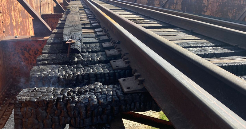 Alrededor de 10 durmientes del puente fueron calcinadas por personas desconocidas, creando un peligroso riesgo