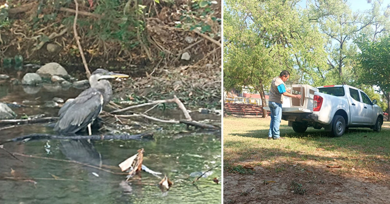 El animalito trataba de alzar el vuelo extendiendo sus grandes alas, pero una aparente lesión se lo impedía.