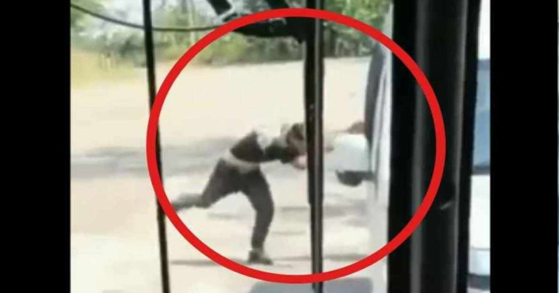 En el video se observa, como dos elementos de migración jalonean y dan puñetazos a la persona de origen extranjero, quien se resiste a subirse a la unidad del INM.