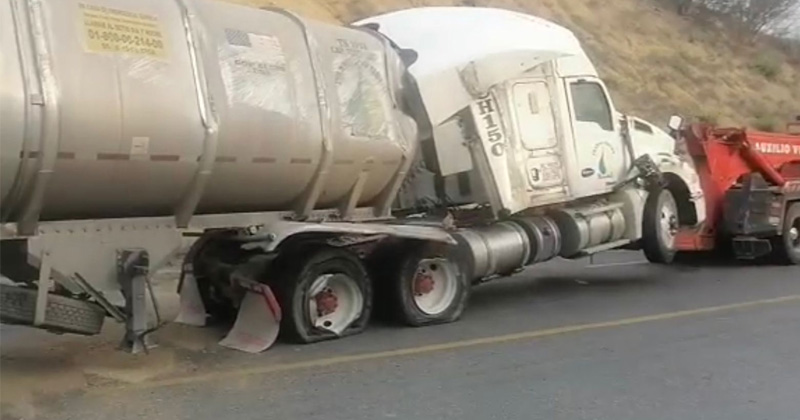 Las maniobras para retirar el tráiler volcado que remolcaba dos pipas llenas de gasolina en el kilómetro 32 concluyeron pasadas las 18:00 horas de hoy