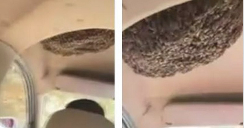 Taxista conduce su auto con un panal de abejas dentro