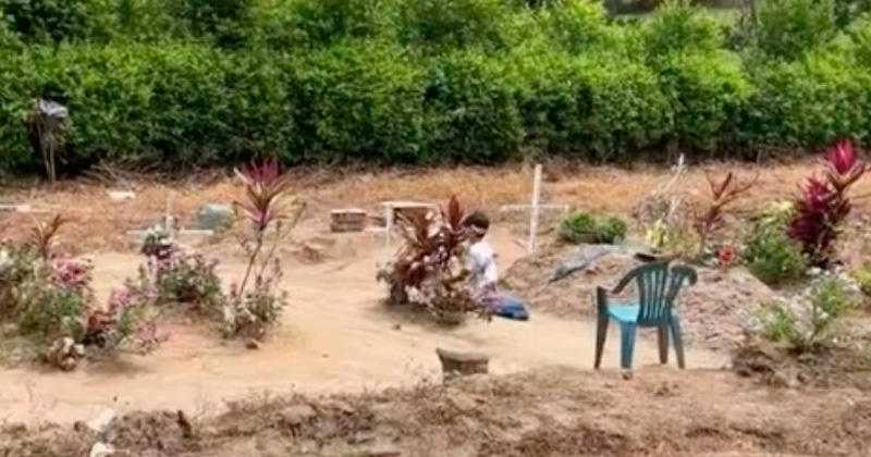 VIDEO. Niño va diario a la tumba de su mamá para hacer la tarea