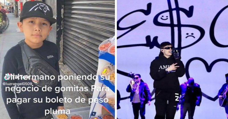 Niño vende gomitas para juntar dinero y poder ver a Peso Pluma