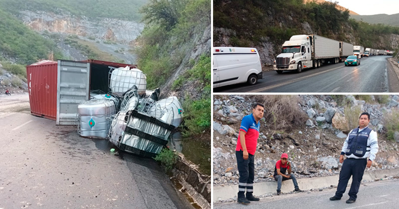 Camión cargado con miel de agave se estrella contra un talud de la sierra, se revienta uno de los bidones, riega el producto y pone en riesgo de patinar a otros vehículos