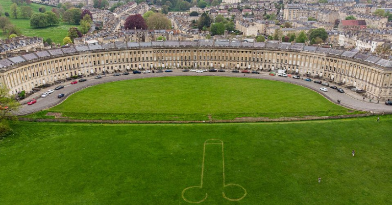 Dibujan enorme pene en jardín donde festejarán la coronación de Carlos III