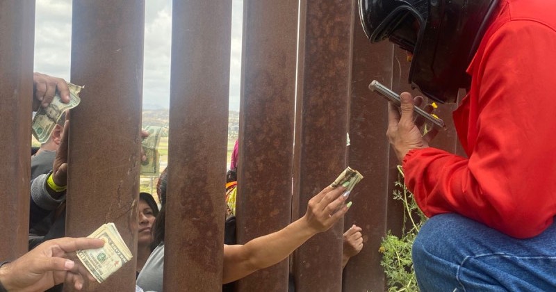Repartidores llevan comida a migrantes hasta el muro fronterizo