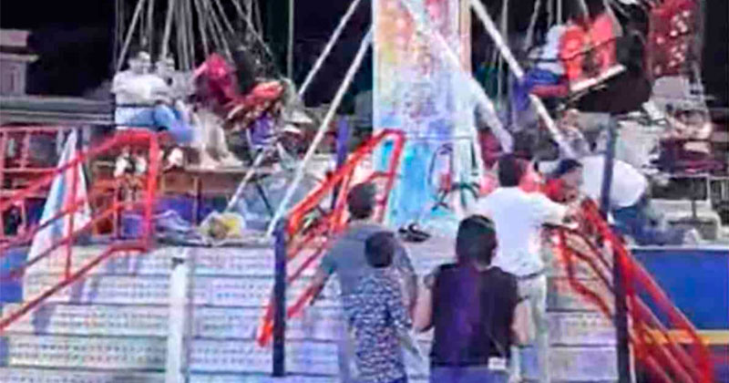 Salen volando de juego mecánico en la Feria de Comalcalco